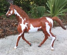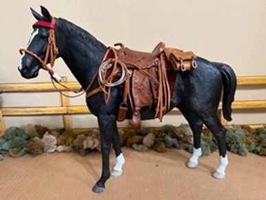 This is Rebecca West with a Marx Thunderbolt resculpted/repainted to a palomino tobiano pinto. Tack is by Ben's Custom Tack.