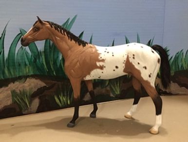 Flocked Plastic Horse repainted to Buckskin Appaloosa