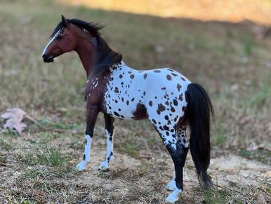 "Firecracker," bay Appaloosa, repainted Mr. Z Hanoverian