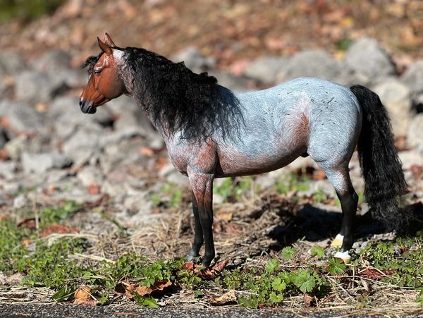 Tom Selleck's horse in "Crossfire Trail," who is a repainted Mr. Z Thoroughbred to a red roan. I have named him Redford.